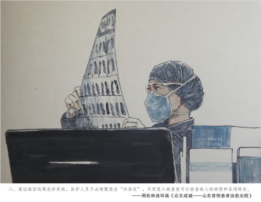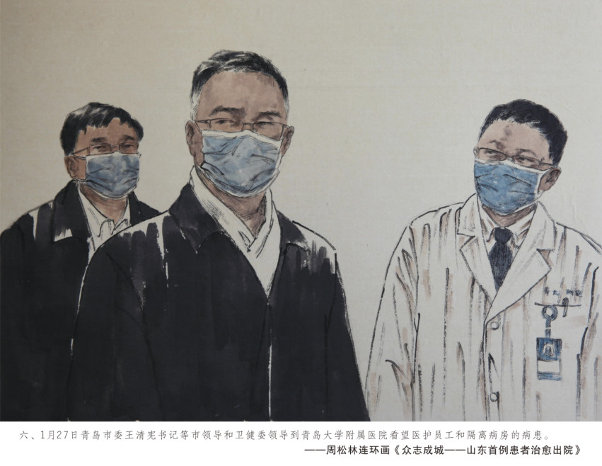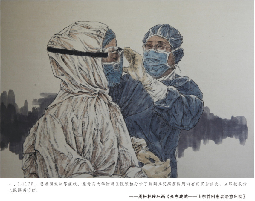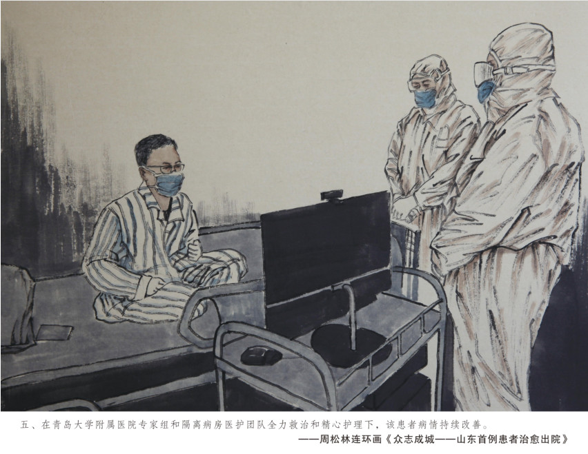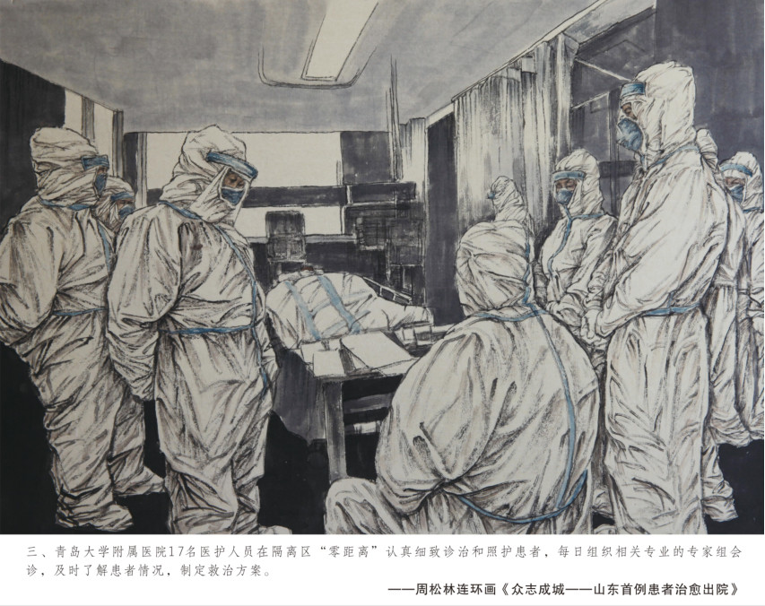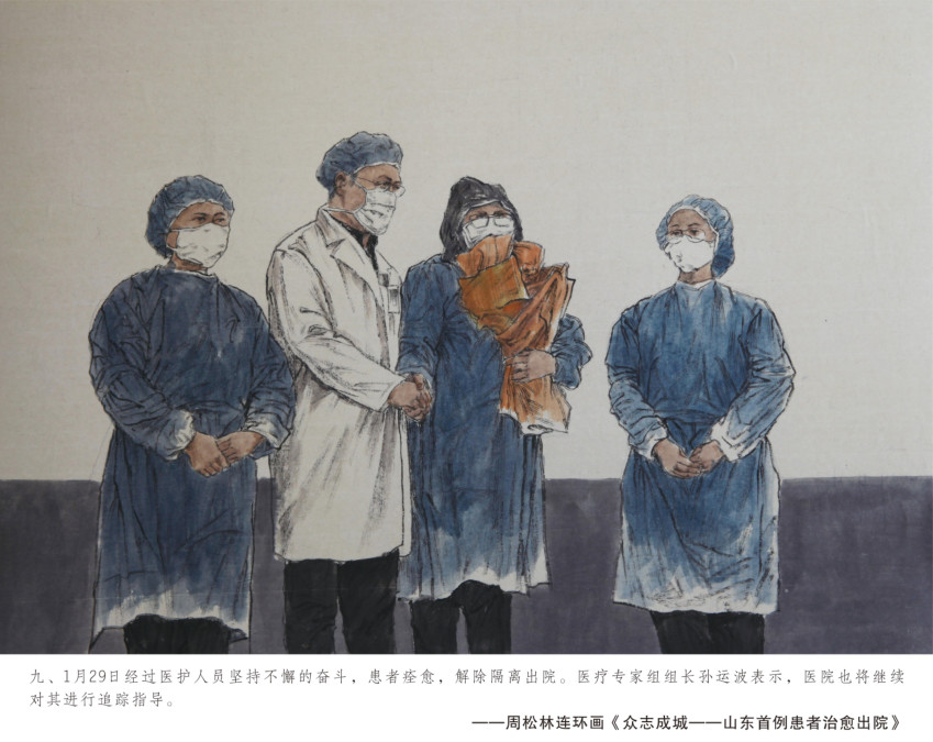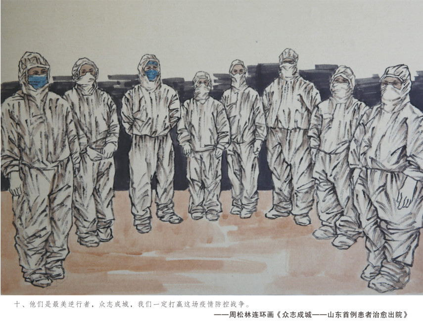 新闻网讯 近日,我校美术学院副教授周松林创作了防治疫情连环画《众志成城——山东首例患者治愈出院》。画作表现了我校附属医院医护人员的奋斗在最危险一线,无私奉献,不畏艰难,众志成城,战胜疫情的决心,也展现了新时代的青大精神。中国美术家协会、山东省教育发布纷纷转载本作品。